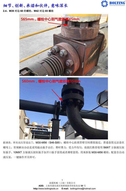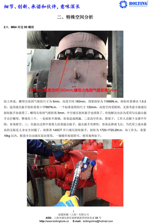 業(yè)主方之前從武漢購(gòu)買過一套德國(guó)品牌液壓扳手,使用情況并不理想,由于液壓泵和開口液壓扳手較為笨重,故不考慮。