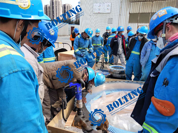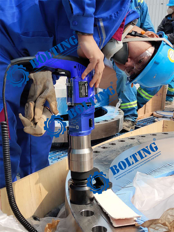 為助力青島某海洋工程有限公司建設(shè)世界最大的乙二醇模塊化項(xiàng)目,我公司技術(shù)人員身赴現(xiàn)場培訓(xùn)指導(dǎo)數(shù)顯電動定扭矩扳手的使用,獲得客戶的一直好評和稱贊。